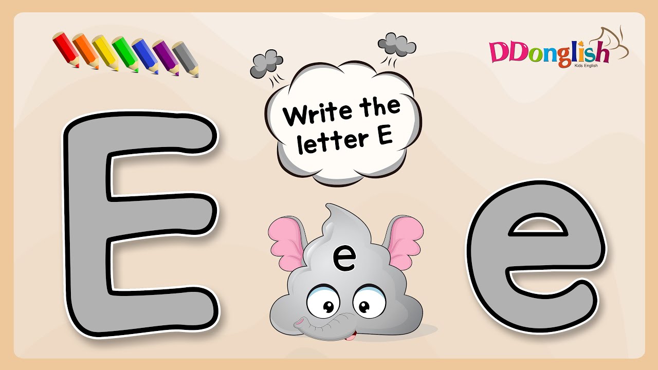 Learn To Write The Letter E With Ellie Elephant Alphabet Writing Practice For Kids Ddonglish Youtube